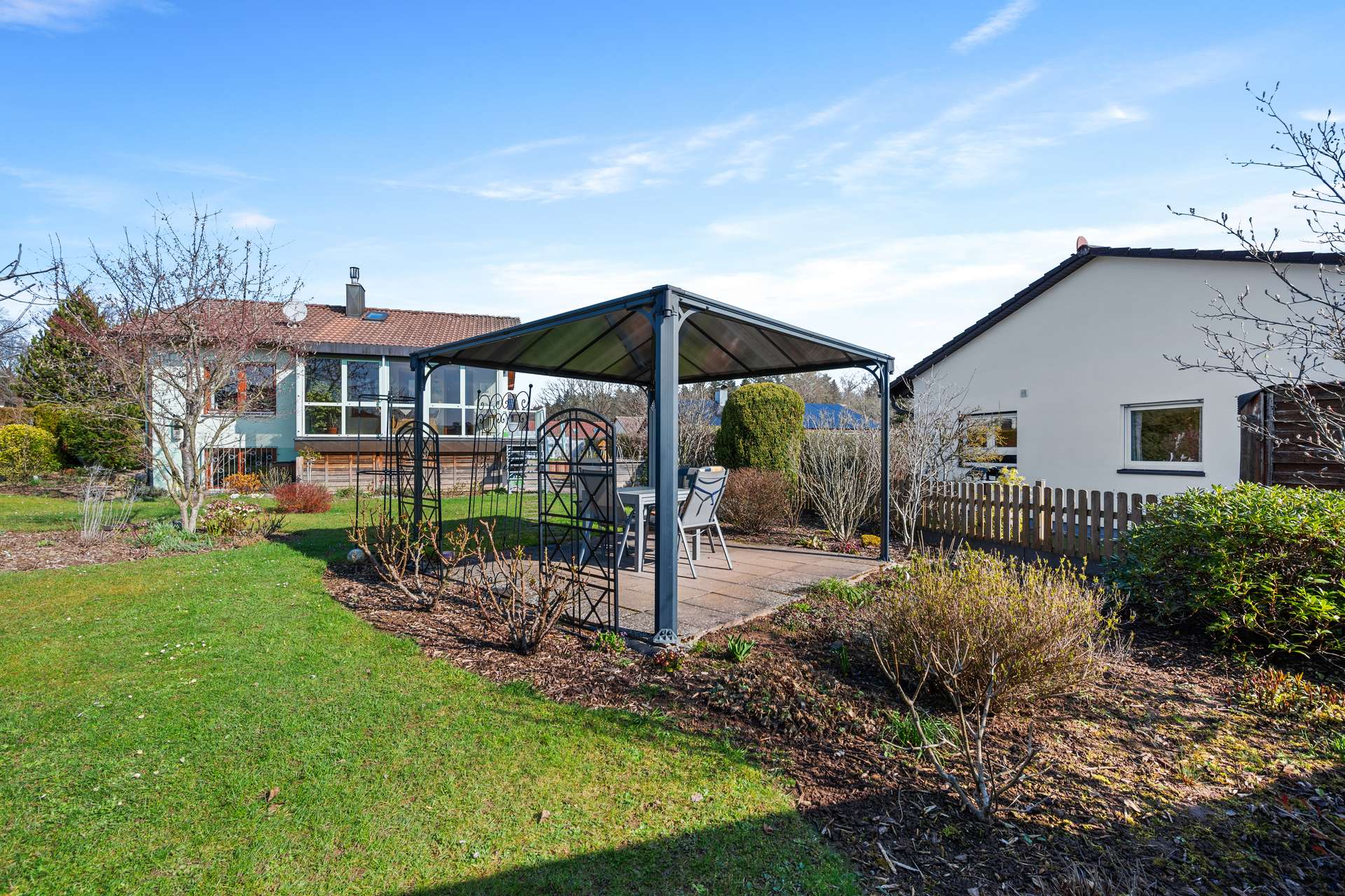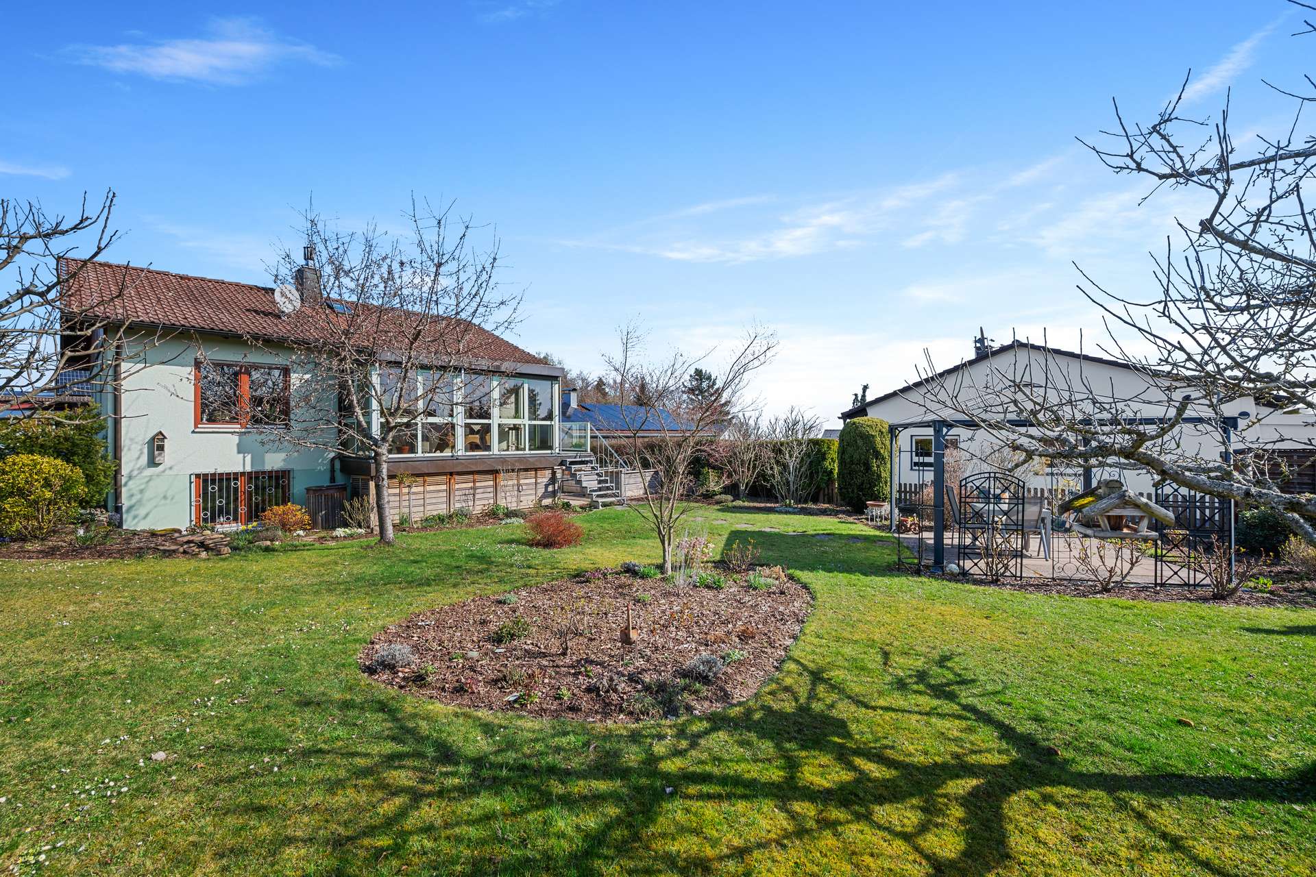Ein ganz besonderes Highlight ist der traumhaft schöne Garten, der vor allem Naturliebhaber begeistern wird. Hier eröffnet sich eine grüne Oase der Ruhe und Entspannung: Ob bei einem entspannten Frühstück im Freien, beim Lesen im Grünen oder bei geselligen Stunden mit Familie und Freunden – dieser Garten lädt dazu ein, jeden Moment bewusst zu genießen.