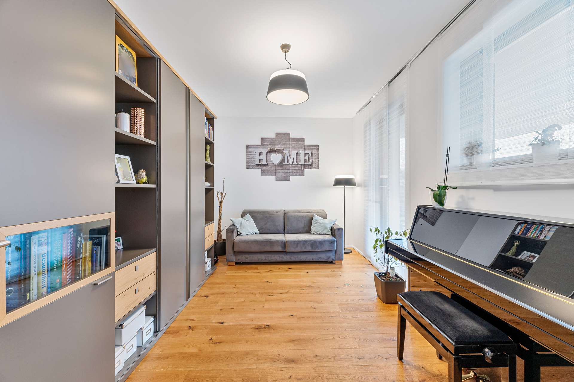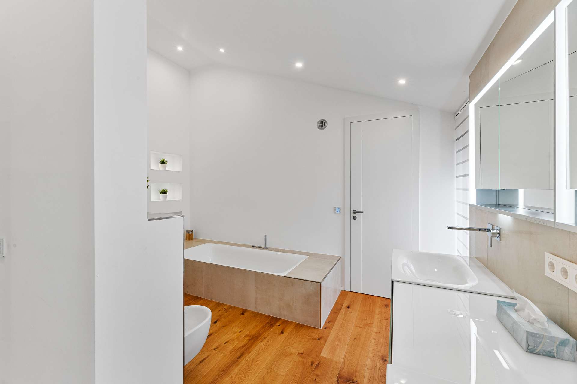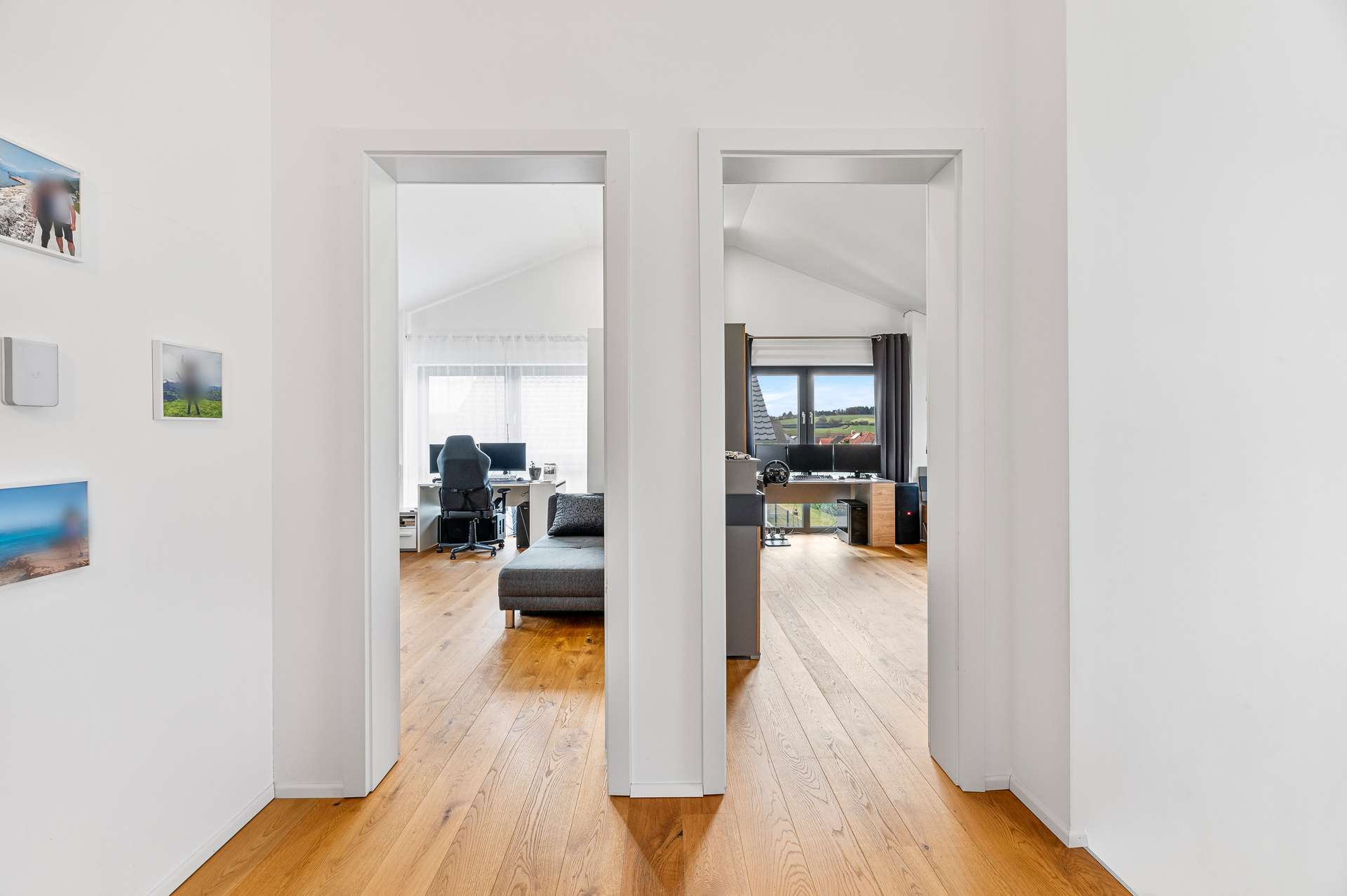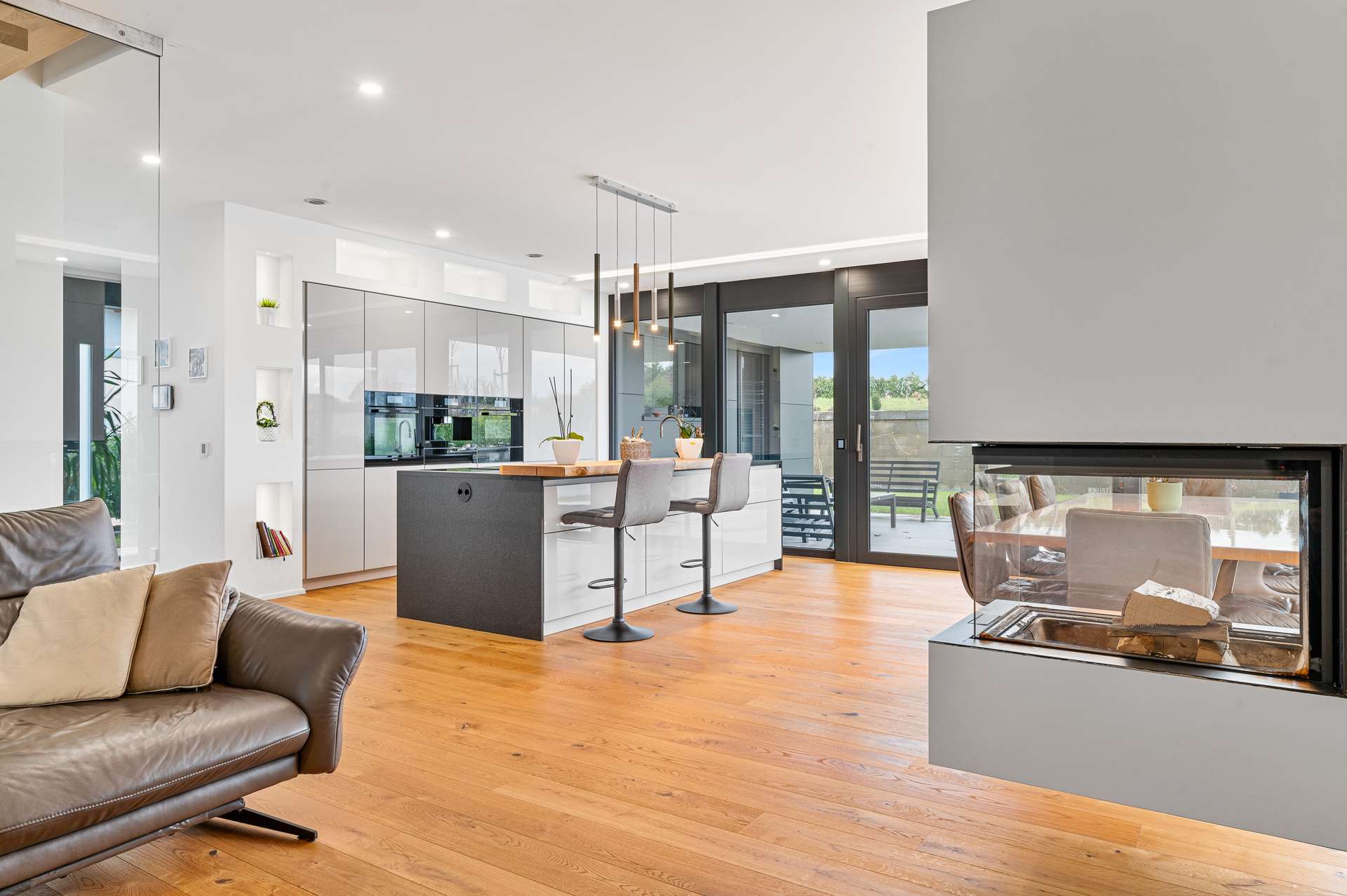 Die großzügigen Fensterfronten lassen alle Räume in natürlichem Licht erstrahlen und schaffen eine einzigartige Wohlfühlatmosphäre. Jeder Raum wurde sorgfältig gestaltet, um höchsten ästhetischen und funktionalen Ansprüchen gerecht zu werden.