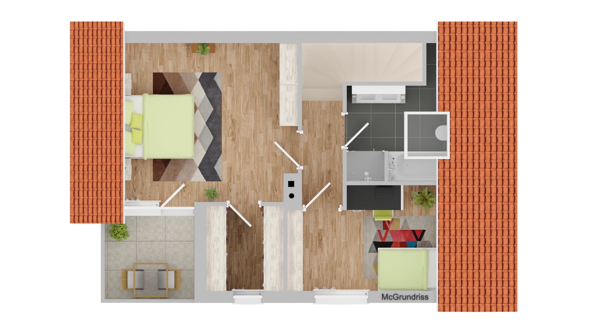 Das Haus verfügt über zwei Schlafzimmer, die genügend Platz für individuelle Bedürfnisse bieten. Ob als gemütliches Schlafzimmer, Arbeitszimmer oder Gästezimmer – hier finden Sie vielfältige Nutzungsmöglichkeiten.