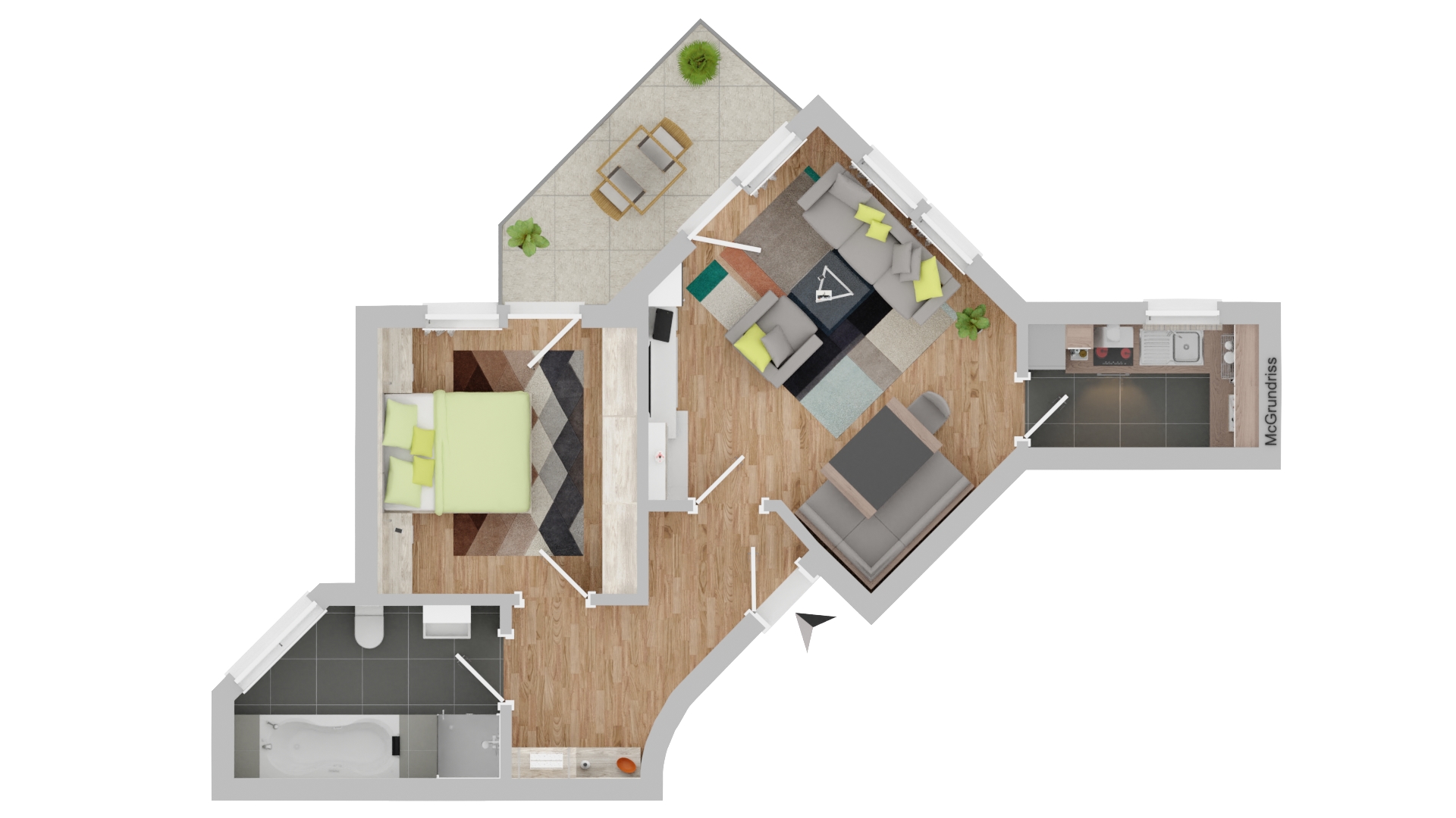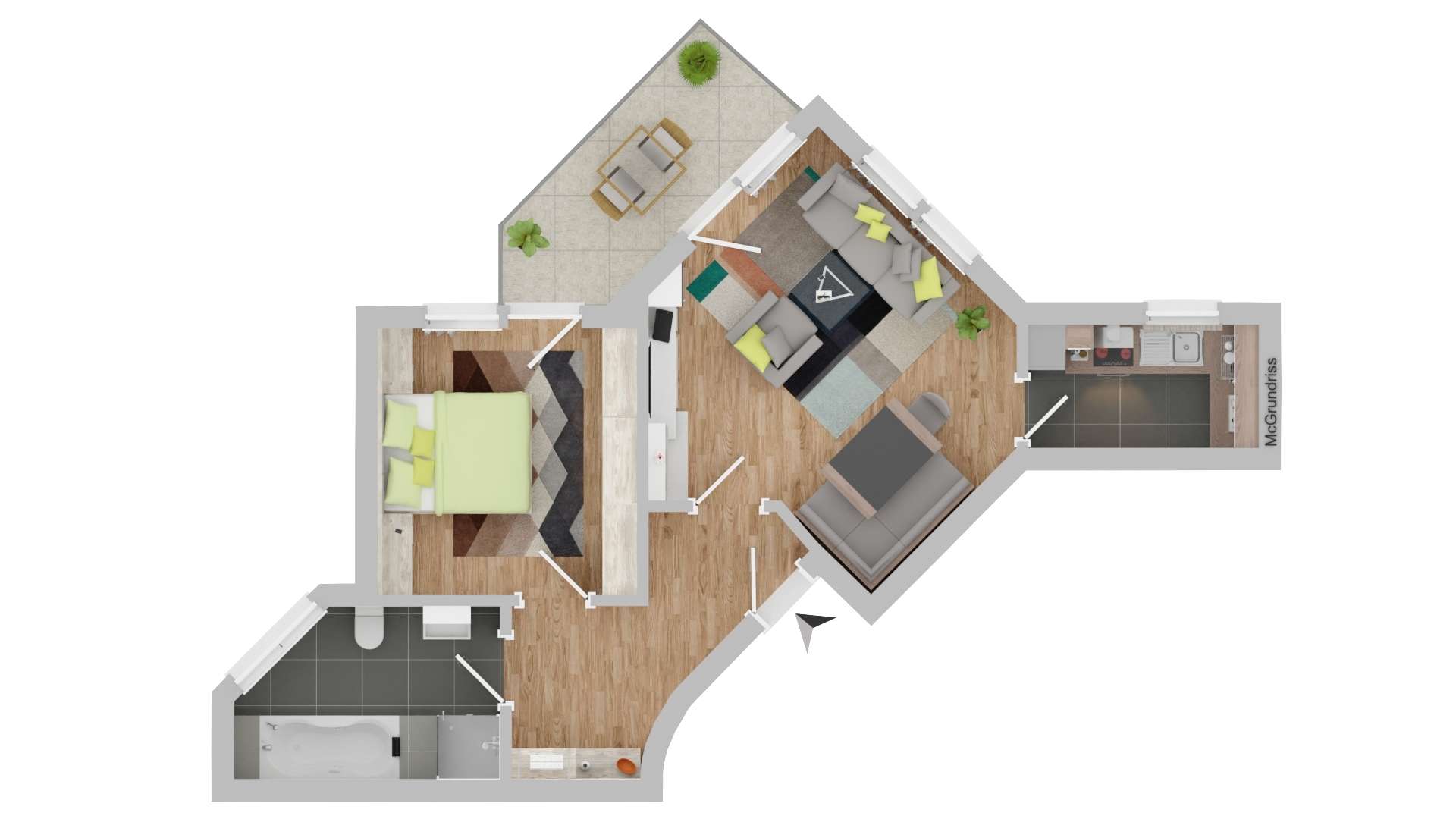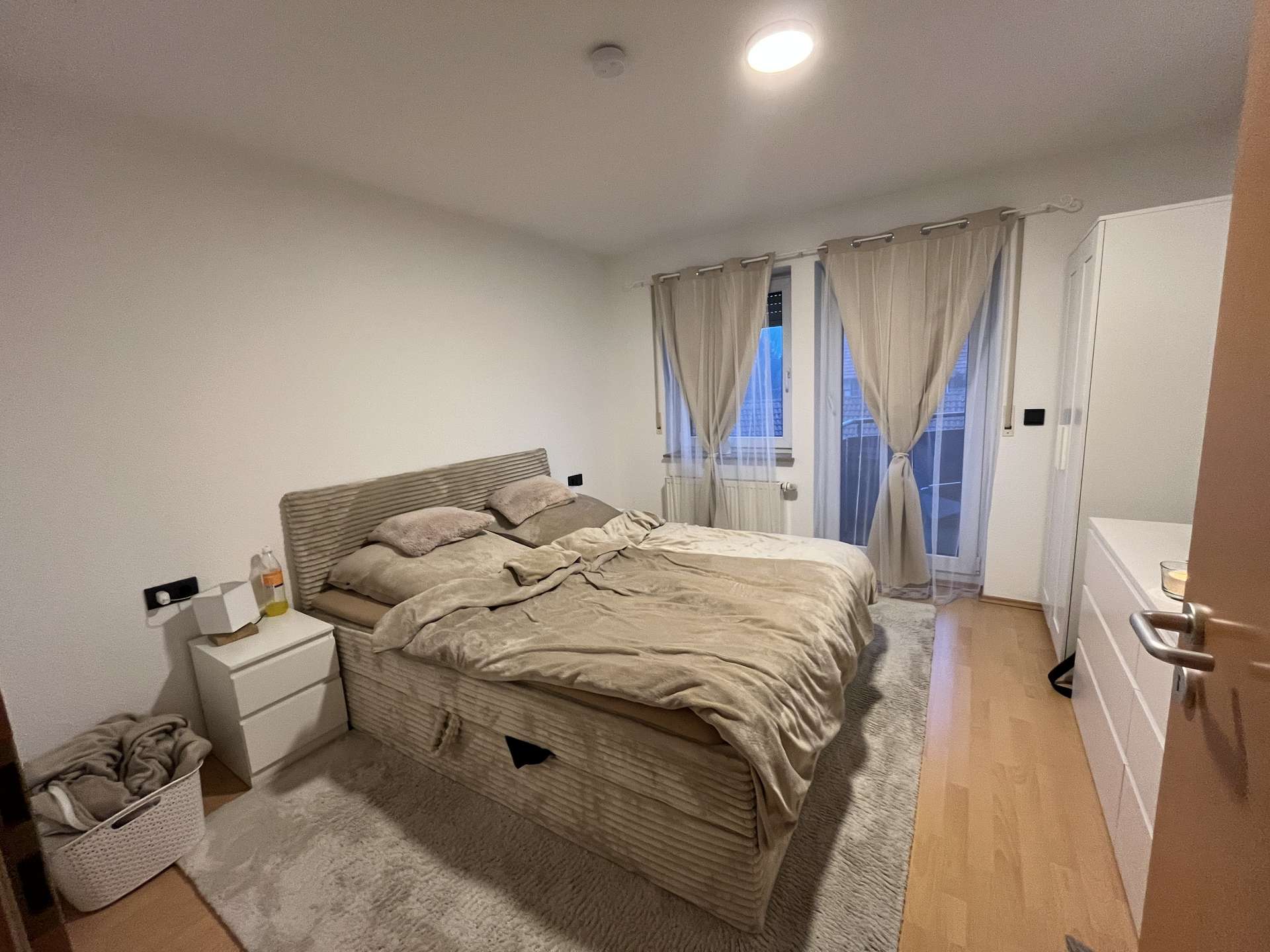 Das Highlight der Wohnung ist das gemütliche Schlafzimmer, das einen direkten Zugang zu einem sonnigen Balkon bietet – perfekt, um den Tag entspannt zu beginnen oder ausklingen zu lassen. Auch vom Wohnzimmer aus gelangen Sie auf den Balkon, der zusätzlichen Wohnkomfort und eine angenehme Verbindung nach draußen schafft. Das große Badezimmer überzeugt durch seine Geräumigkeit und bietet zusätzlichen Komfort.